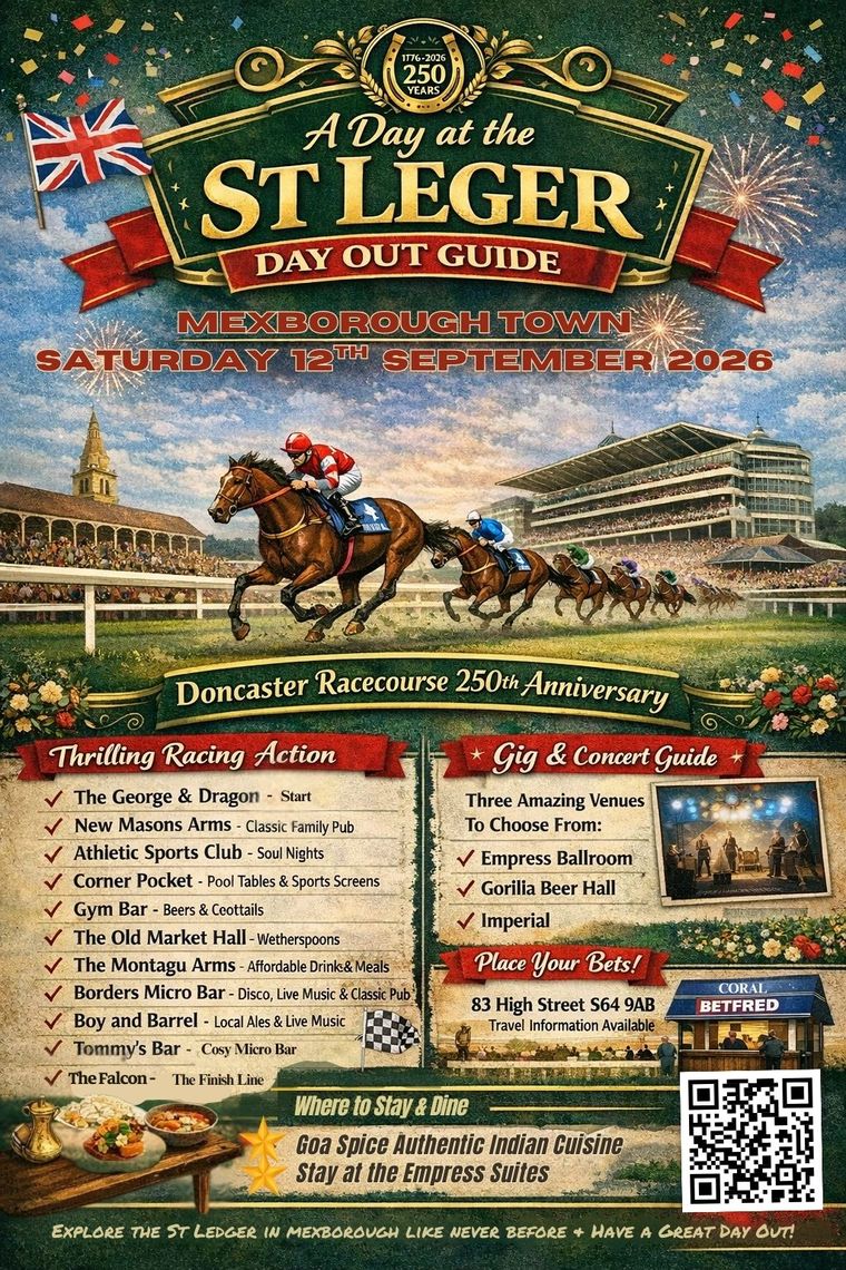 With fireworks, town celebrations, racing energy and live entertainment, A Day at the St Leger 2026 promises to be one of Mexborough’s most exciting events of the year.