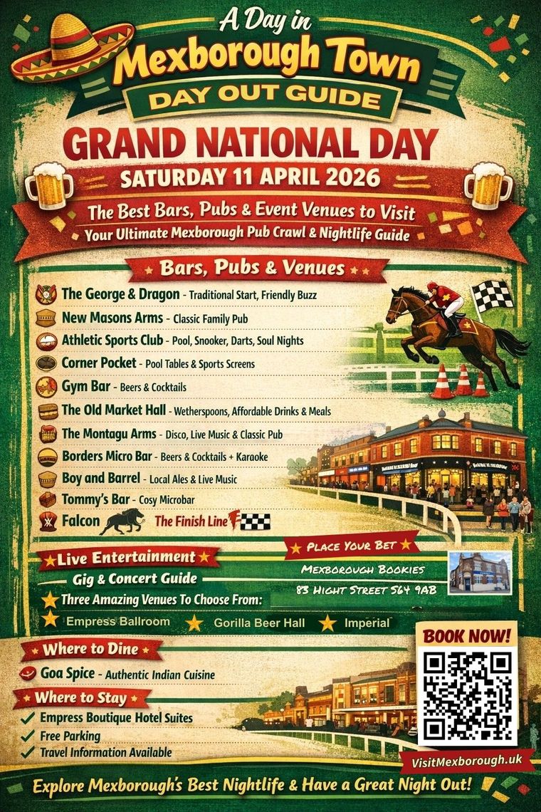 Here’s your ready-made Mexborough route for Grand National Day — designed to keep the vibe building as the day goes on.
