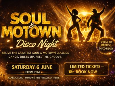 Step into the groove at our Soul & Motown Disco Night! Join us Sat 6 June from 7PM at the Empress Ballroom for timeless hits, dancefloor classics and feel-good vibes. Dance all night ‘til late — grab your tickets now for an unforgettable night of music and memories!